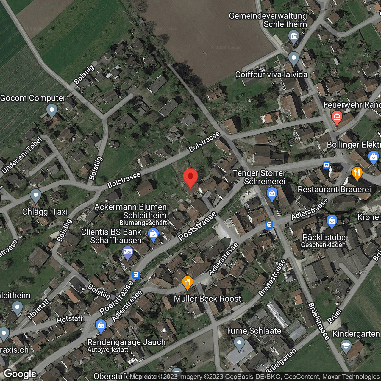 Die 1'693 m2 grosse und erschlossene Baulandparzelle liegt im Dorfkern von Schleitheim an etwas erhöhter Lage. Im unteren Teil, etwas zurück versetzt und erschlossen über die Poststrasse, befindet sich ein Bauernhaus (eine komplette Sanierung notwendig), welches in der Ortsbildschutzzone liegt. Der obere Teil der Parzelle, welche über die Bolstrasse zugänglich ist, bietet diverse Möglichkeiten einer Bebauung.