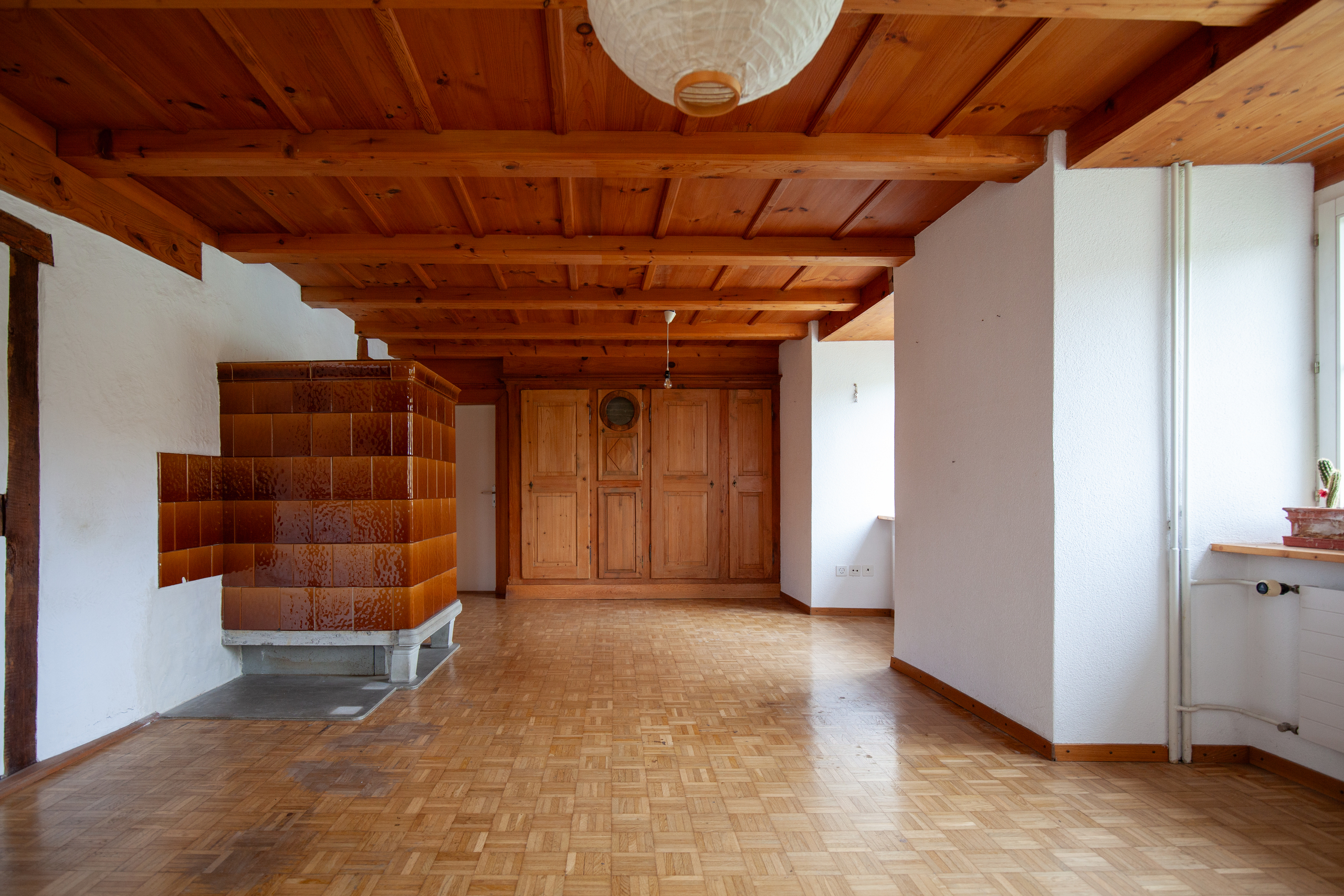 Das Wohnhaus mit Scheune wurde 1820 erstell und im Laufe der Zeit umgebaut und erweitert. Das 7.5-Zimmer Haus hat eine Wohnfläche von knapp 180 m2 sowie einen riesigen noch nicht ausgebauten Dachstock.