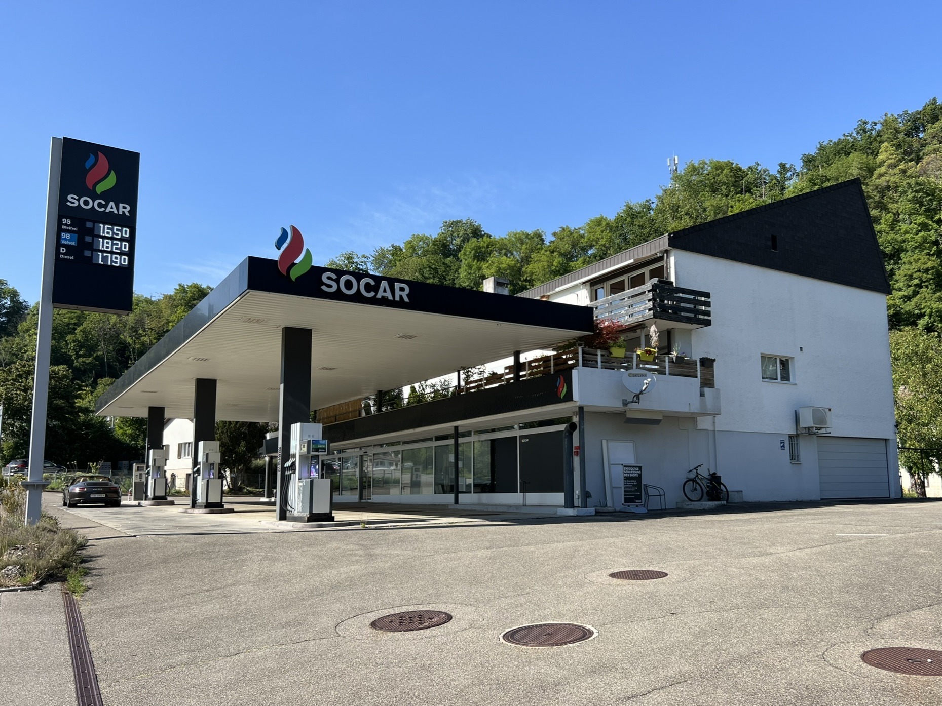 Erdgeschoss: Tankstelle mit Shopping, Café-Bar und Lagerräume (zur Zeit nicht in Betrieb) total rund 120 m2