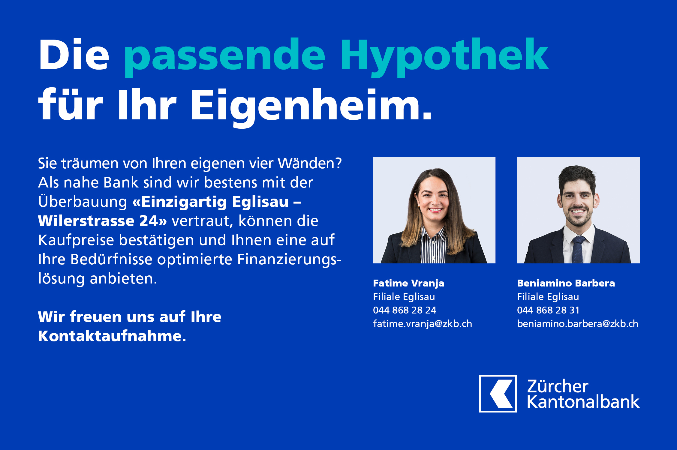 Zur Wahl stehen noch mittlere, grosse und richtig grosse Wohnungen. Deshalb nutzen Sie die Gunst der Stunde und schöpfen Sie aus dem Vollen – vereinbaren Sie jetzt einen Termin mit Hans oder Andreas Graf!