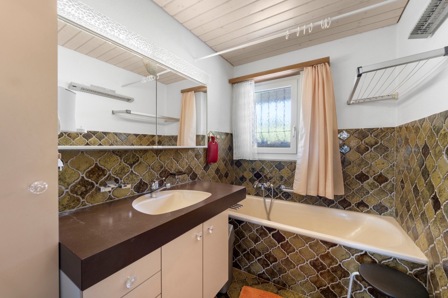 Das Einfamilienhaus befindet sich in gutem Zustand – Fenster sind dreifach verglast – eine sanfte Renovation (Küche, Bäder und Böden) bietet Raum für persönliche Gestaltungswünsche.