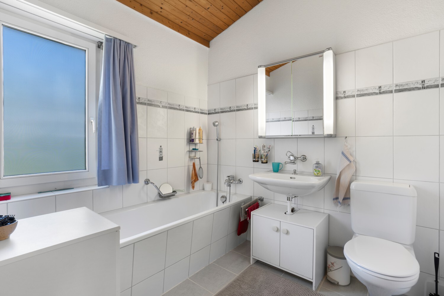Das Objekt befindet sich in einem gut erhaltenen, gepflegten Zustand und verfügt über eine ideale Infrastruktur. Geschäfte, Restaurants, Poststelle und Apotheke sind gut erreichbar. Die Bushaltestelle befindet sich in nächster Nähe und der Bahnhof kann ich Kürze mit dem Velo oder dem Auto erreicht werden. Zudem ist die Gegend kinderfreundlich mit Kindertagesstätte, Vorschule, Grund- und Sekundarschule in Fussdistanz.