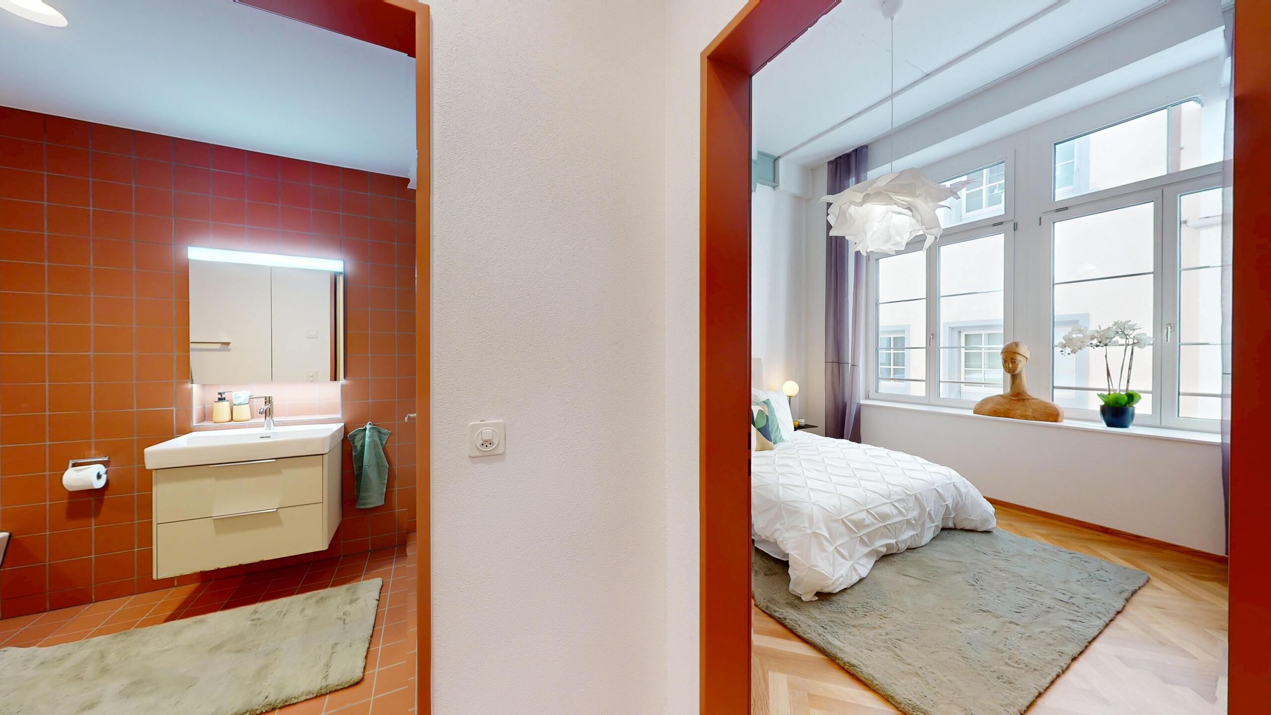 Zentrale Lage: Wichtige Einrichtungen, Bahnhof, Einkaufsmöglichkeiten, Restaurants, Cafés und der Rhein in nächster Nähe.