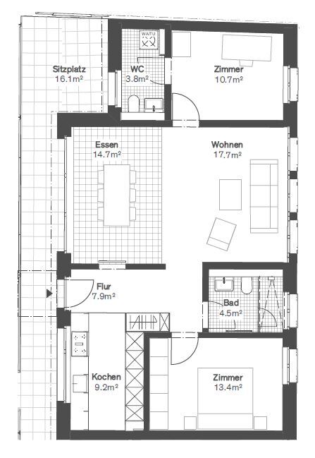 - Moderne 3.5-Zimmer-Wohnung mit eigenem Sitzplatz