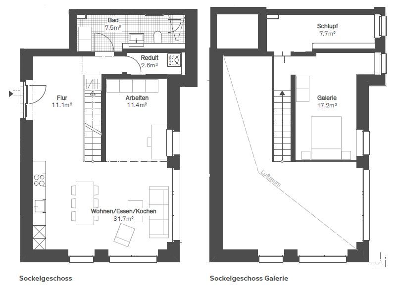 - Raumhöhe: 4.3m für ein helles, luftiges Ambiente