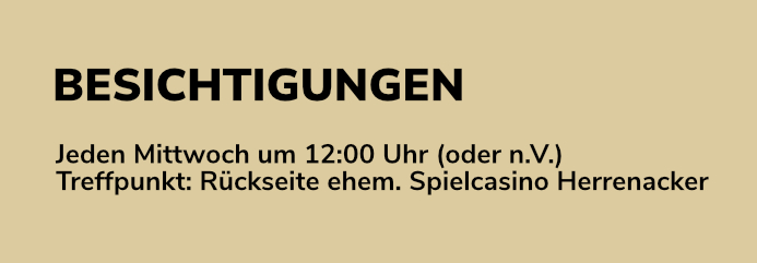 Wohnungsbesichtigung: Jeden Mittwoch um 12 Uhr oder individuell nach Vereinbarung, Treffpunkt: Rückseite ehem. Spielcasino Herrenacker