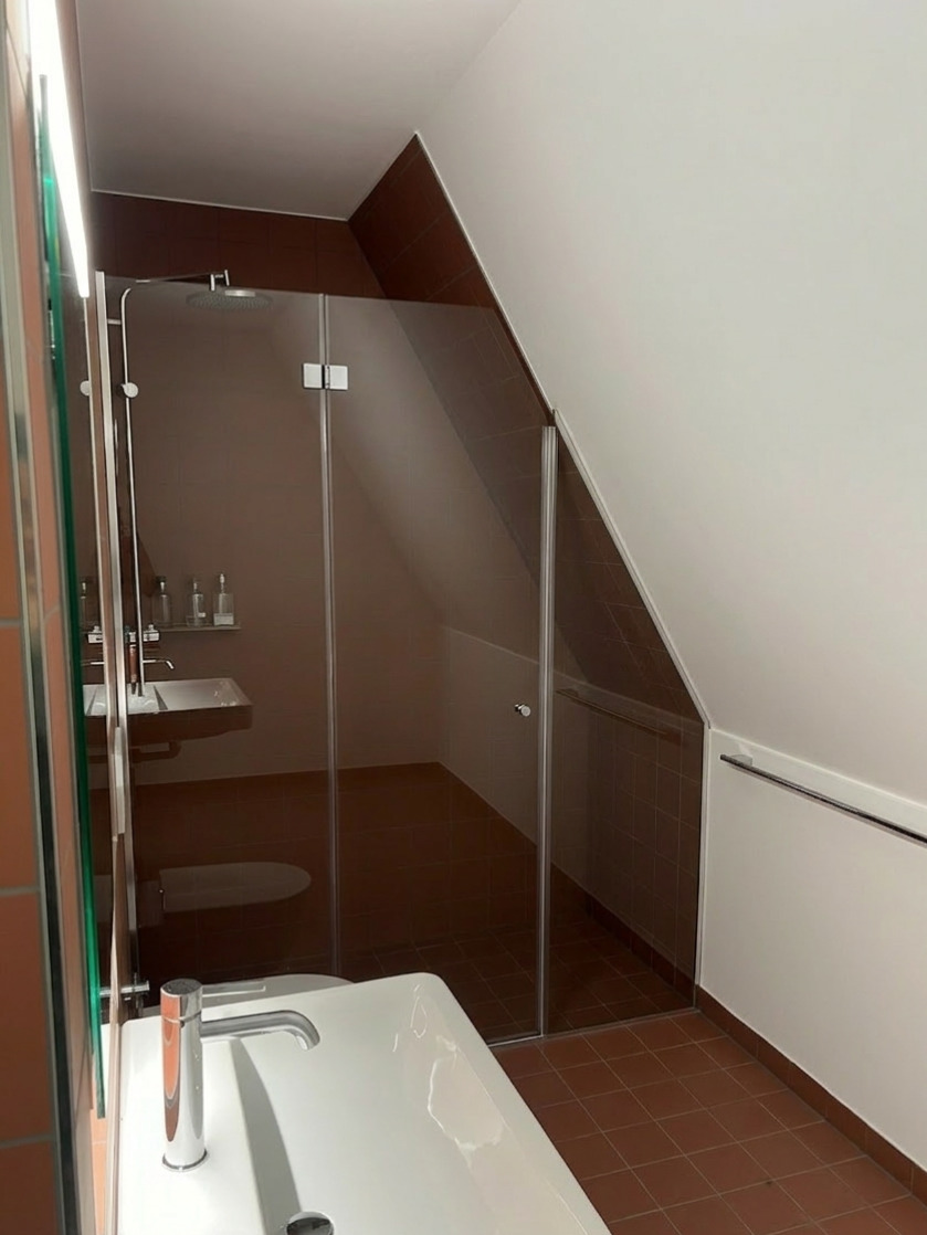 - Pfiffiges Bad mit Dusche sowie separates Reduit mit Waschturm