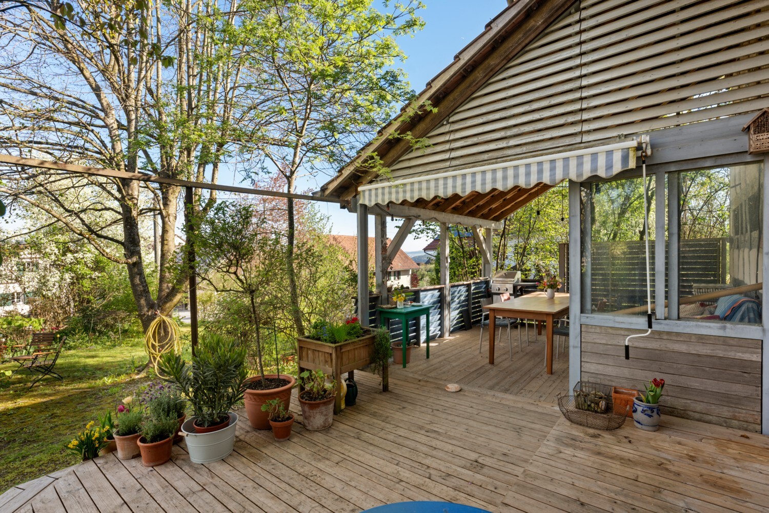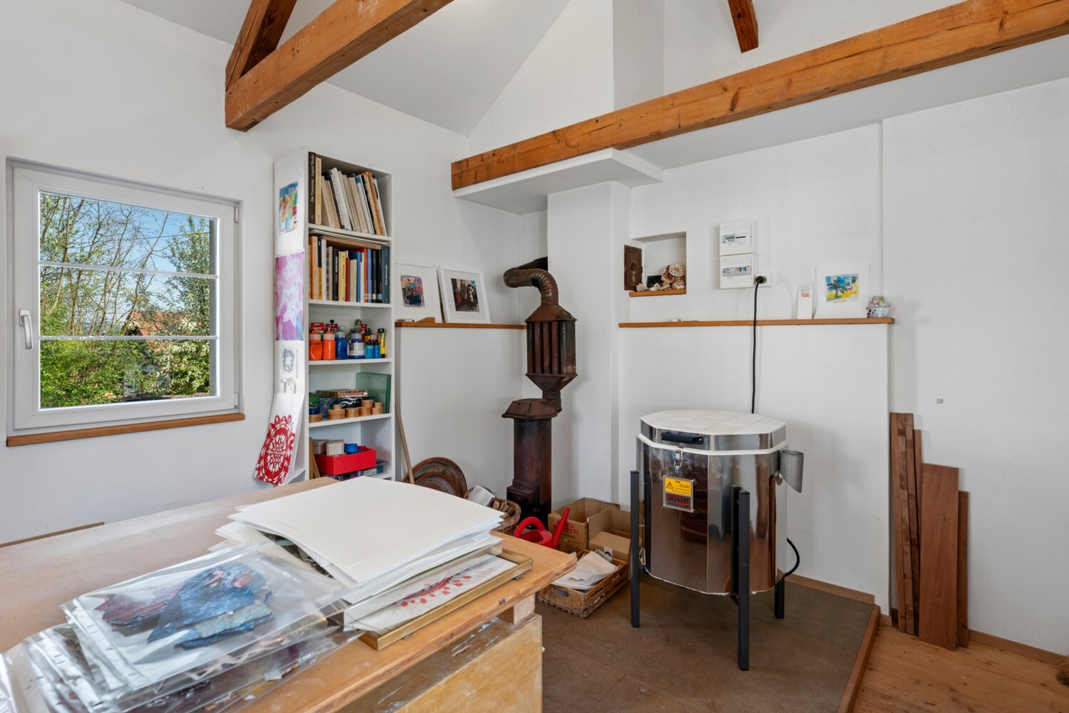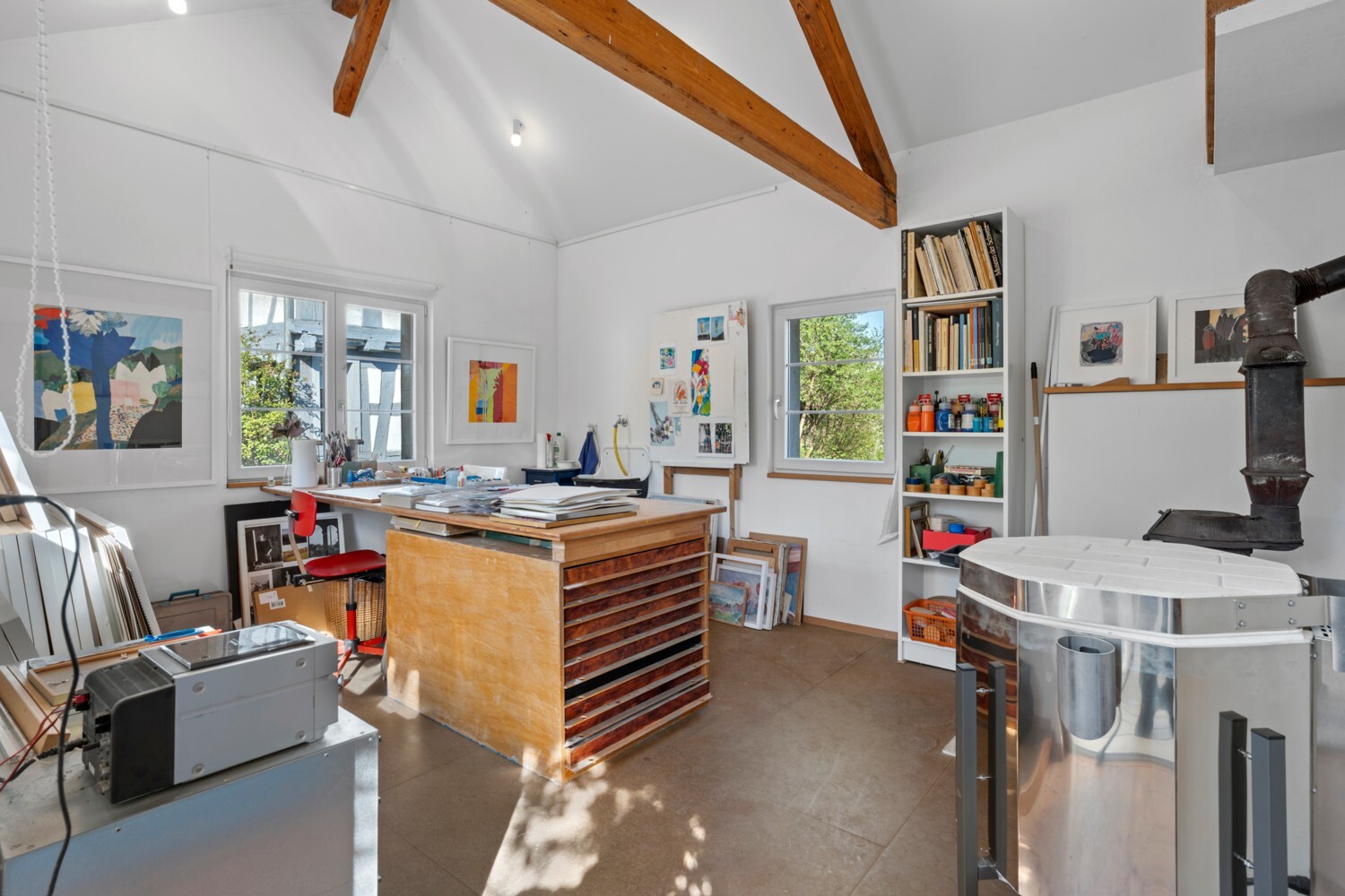 Besondere Highlights sind die gedeckte, einladende Veranda sowie das separate Atelier – das ehemalige Wöschhüsli – welches ebenfalls umfassend und stilvoll saniert wurde.