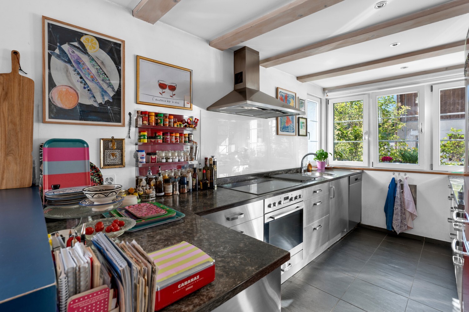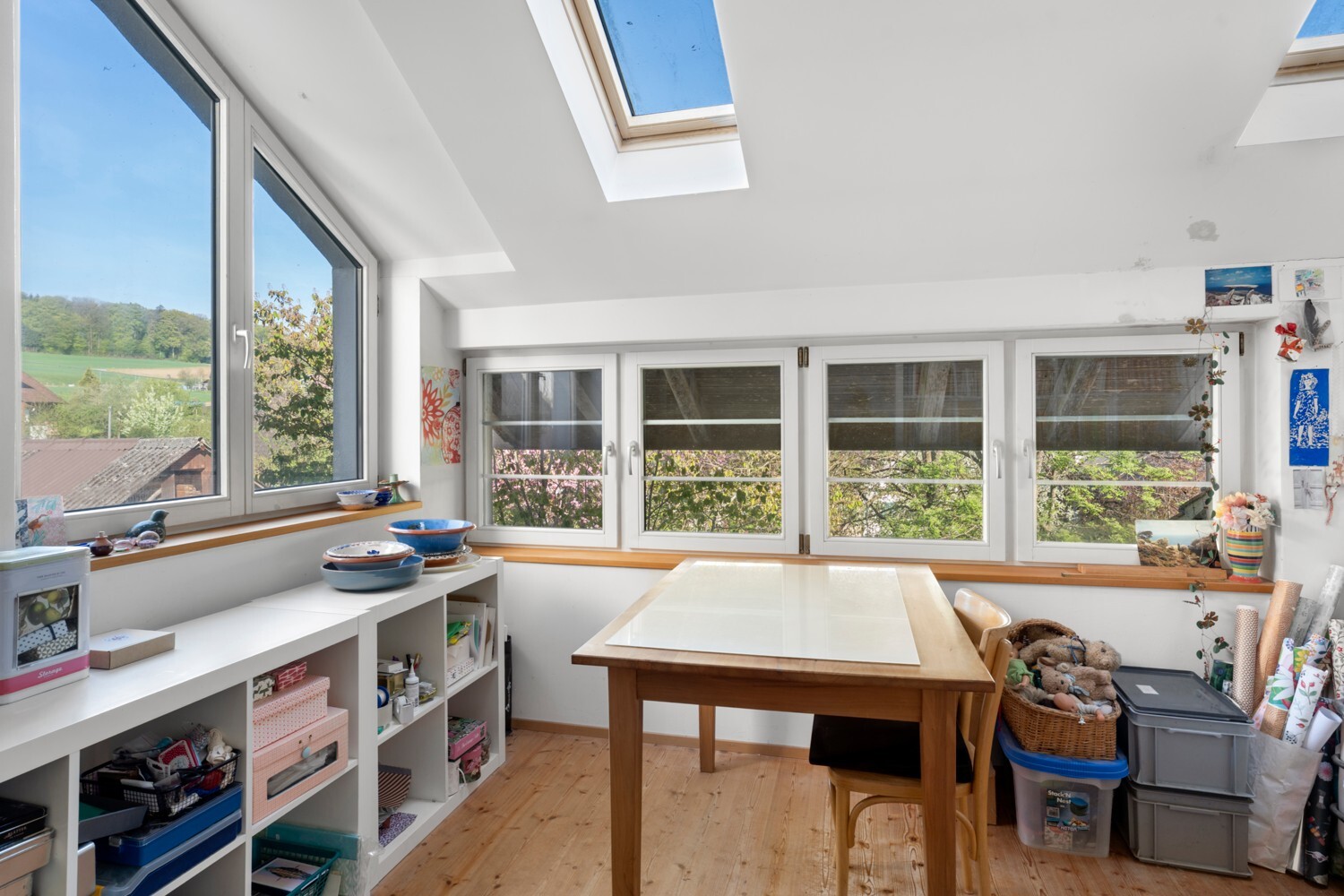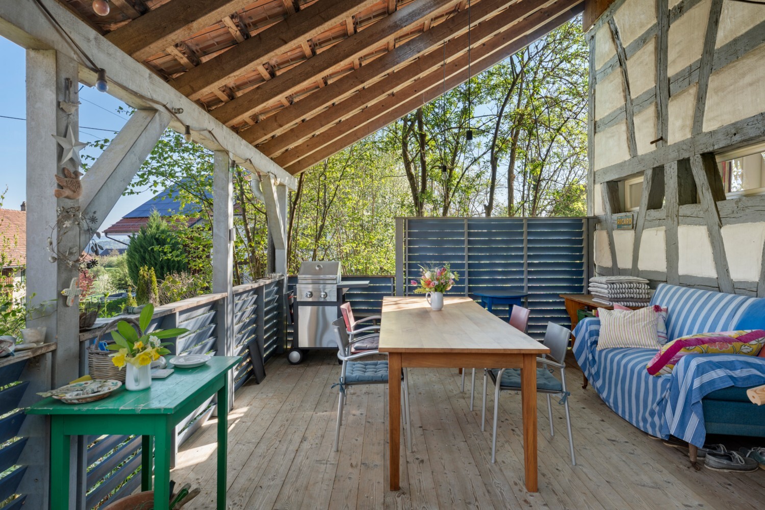 Besondere Highlights sind die gedeckte, einladende Veranda sowie das separate Atelier – das ehemalige Wöschhüsli – welches ebenfalls umfassend und stilvoll saniert wurde.
