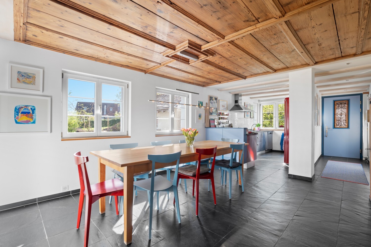 Dieses aussergewöhnliche Bijou vereint historischen Charme mit modernem Wohnkomfort: Das ehemalige Bauernhaus aus dem 17. Jahrhundert wurde im Jahr 2004 mit viel Sorgfalt und Liebe zum Detail vollständig kernsaniert. Dabei blieb der ursprüngliche Charakter des Hauses erhalten, während gleichzeitig ein zeitgemässer Ausbaustandard geschaffen wurde.